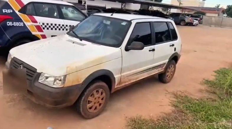 Durante as buscas, um veículo Fiat Uno branco, citado nas apurações, foi localizado na rodovia MT-343. Um dos suspeitos conduzia o carro no momento da abordagem. Em revista, nada de ilícito foi encontrado, mas o veículo apresentava marcas que indicam possível luta corporal, incluindo sinais semelhantes a sangue na parte traseira.